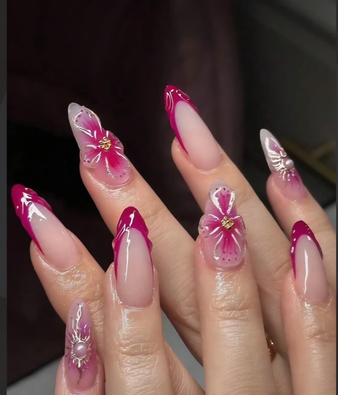 🌺 The Most Trending 3D Beach Blossom Nails in Bright Pink