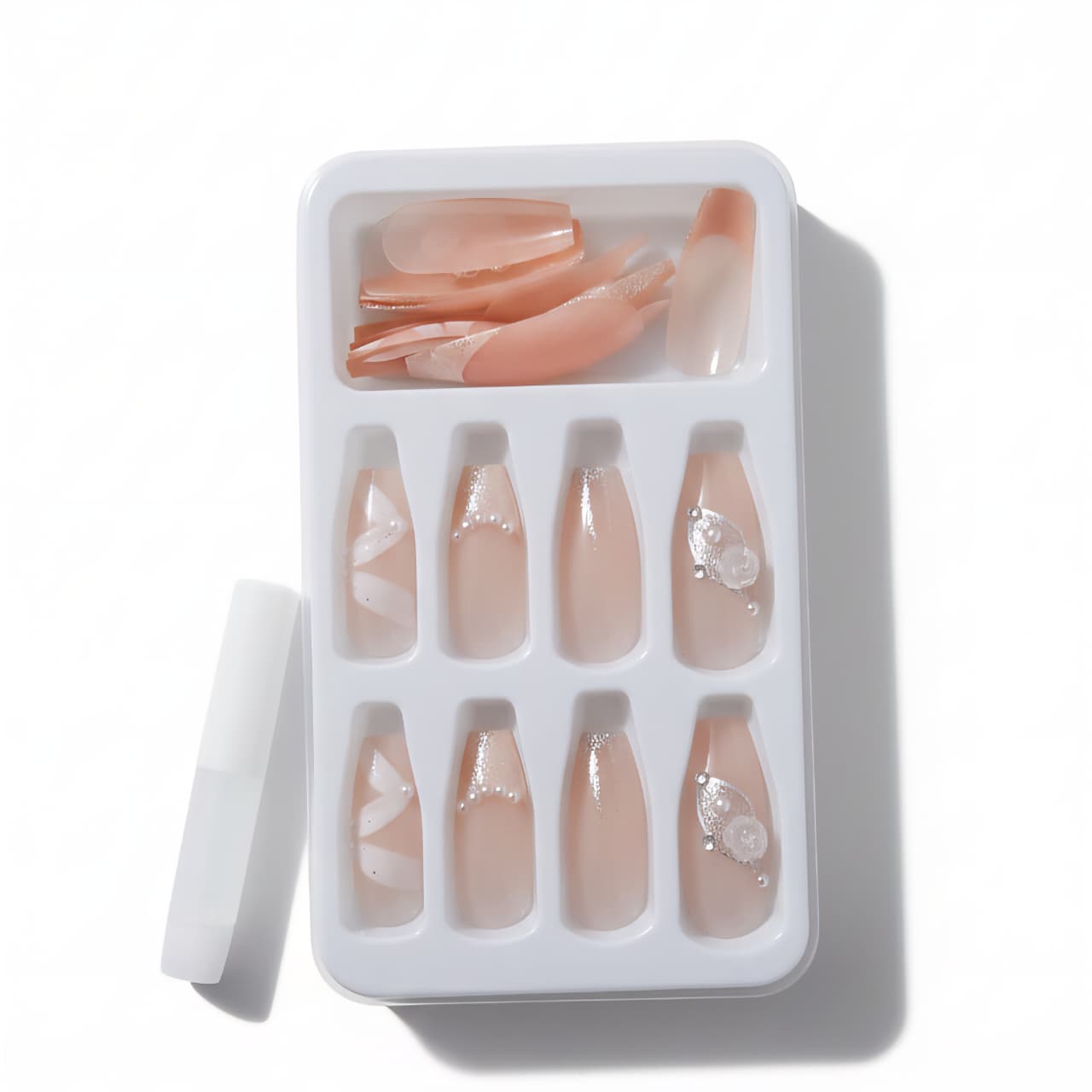 The Bellerina French Pearl Skin Color Nails bring the timeless charm of French tips together with a soft, pearl-toned skin color base — perfect for brides, bridesmaids and anyone who loves minimal luxury. This 24-pcs handmade press-on set offers greater size flexibility, ensuring a comfortable and precise fit for every finger.