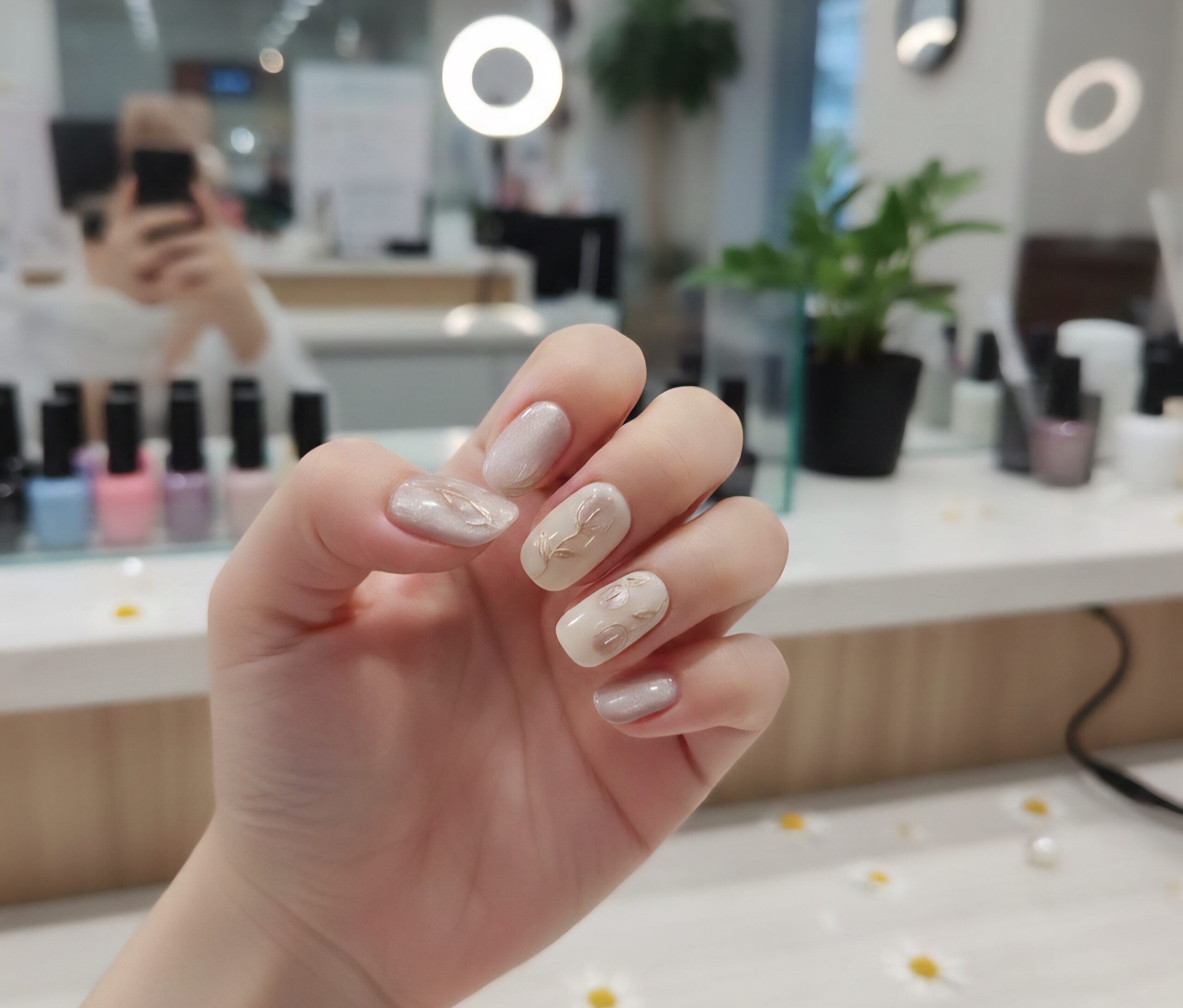 • 15 Cat Eye Chrome Flower Nails