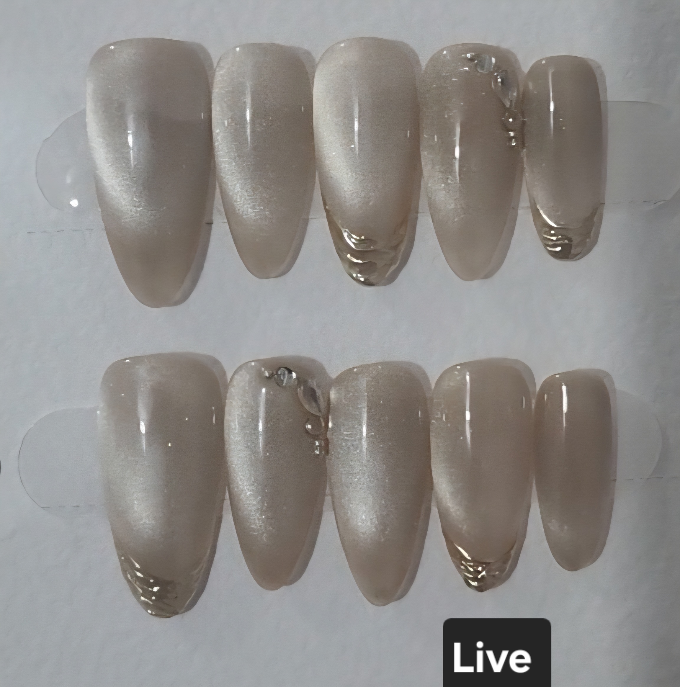 These press-on nails offer a salon-like cat eye glow effect with copper chrome tones that stand out under both daylight and night lighting. Furthermore, the handmade design ensures that every small detailing shines just like pictured in the live image. Live image gives you the exact design visibility, meanwhile other images only guide you for style reference. Because we craft the design exactly as shown, you receive the same quality and finishing every single time.