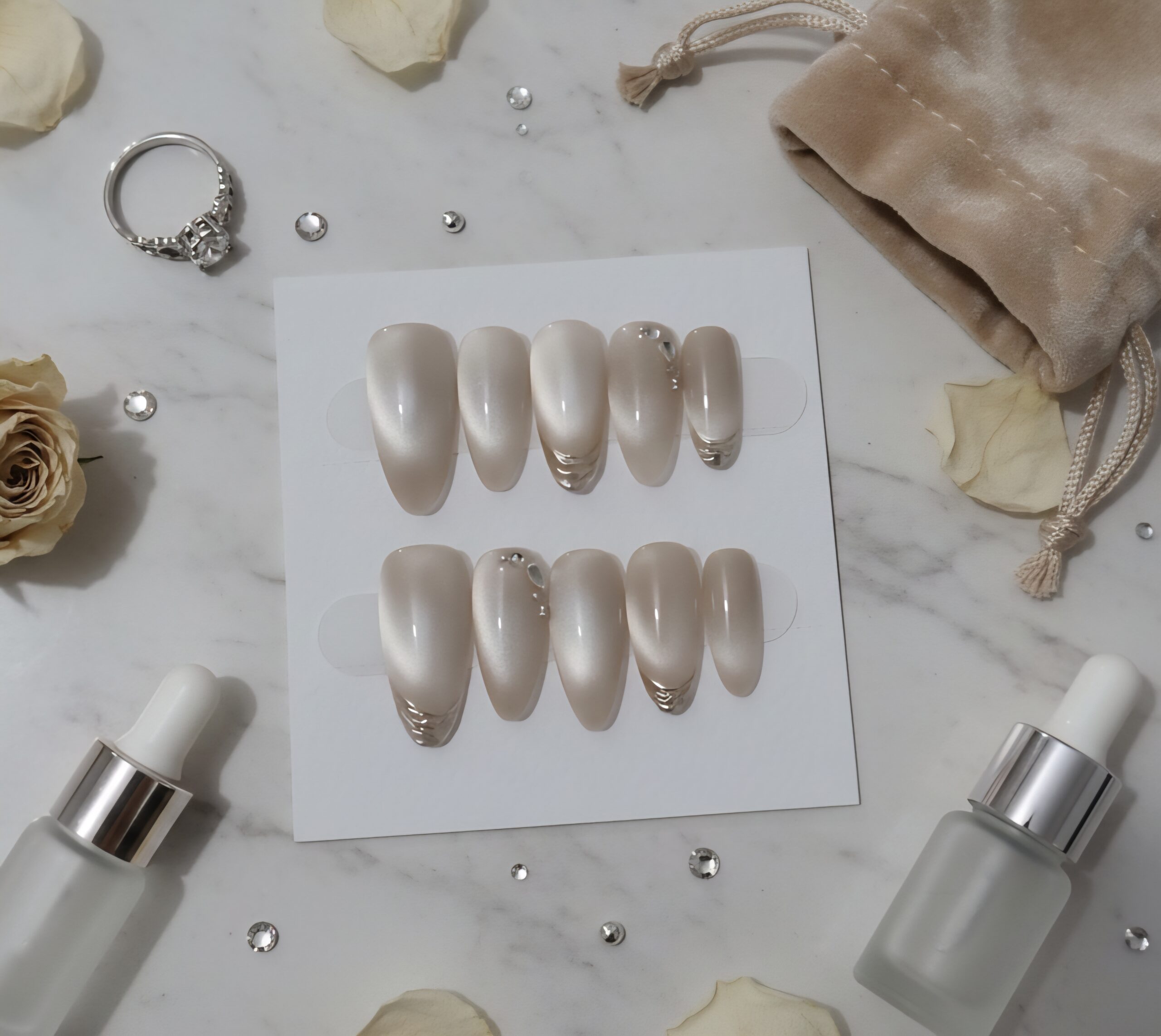 Bridal shine stays strong, therefore your pictures match the same design effect. Finally, enjoy hands that look premium, styled and engagement-ready — with nails that stay shiny, reusable and easy to apply at home.