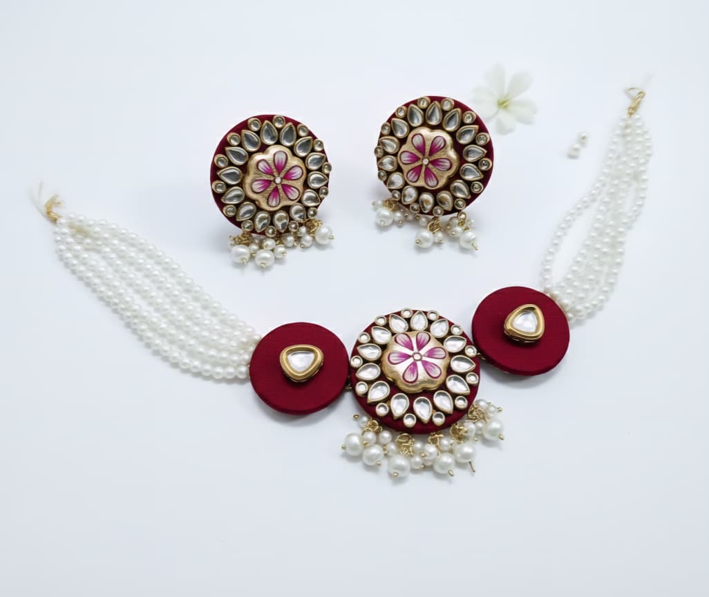 2-piece handmade set includes a luxury choker necklace and matching earrings.