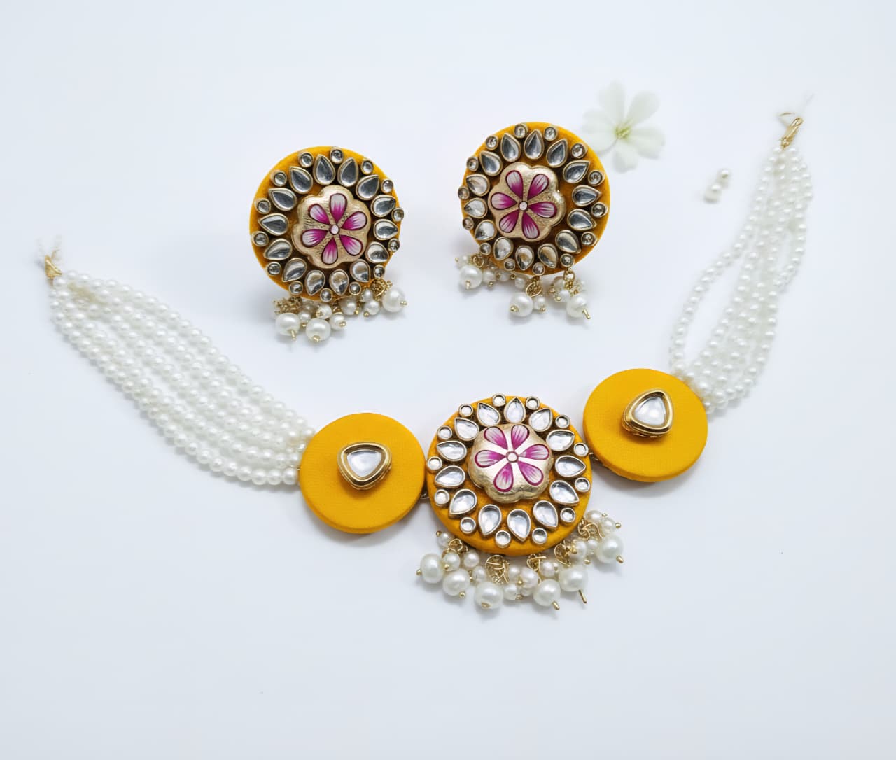 Roopratna Haldi Handmade Jewellery Set | Necklace, Earrings, Handphool & Mangtikka