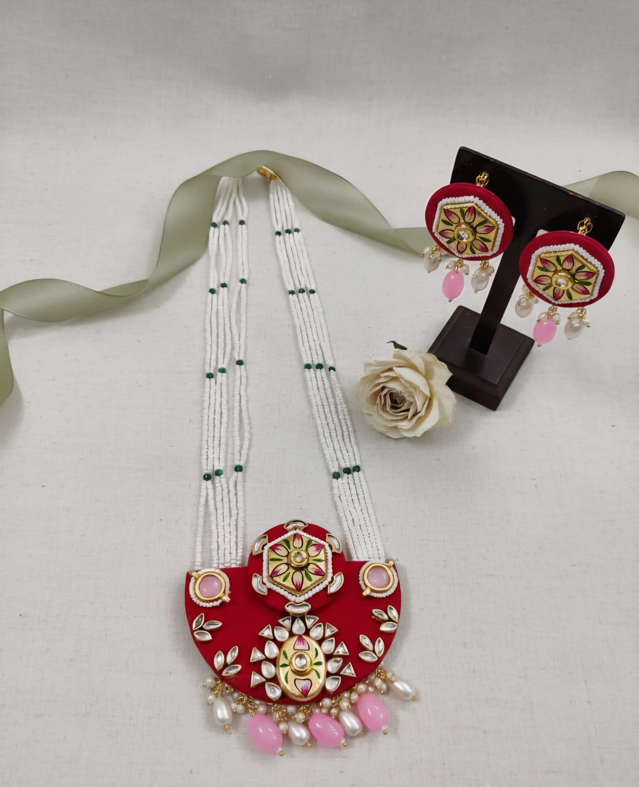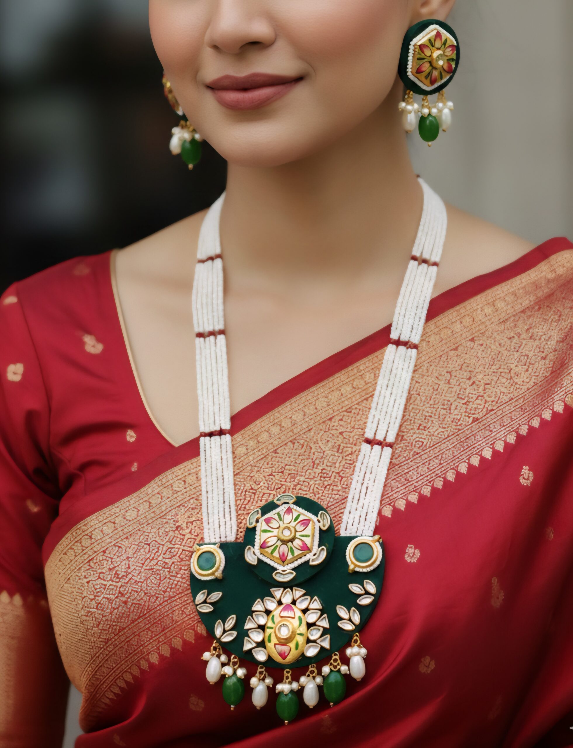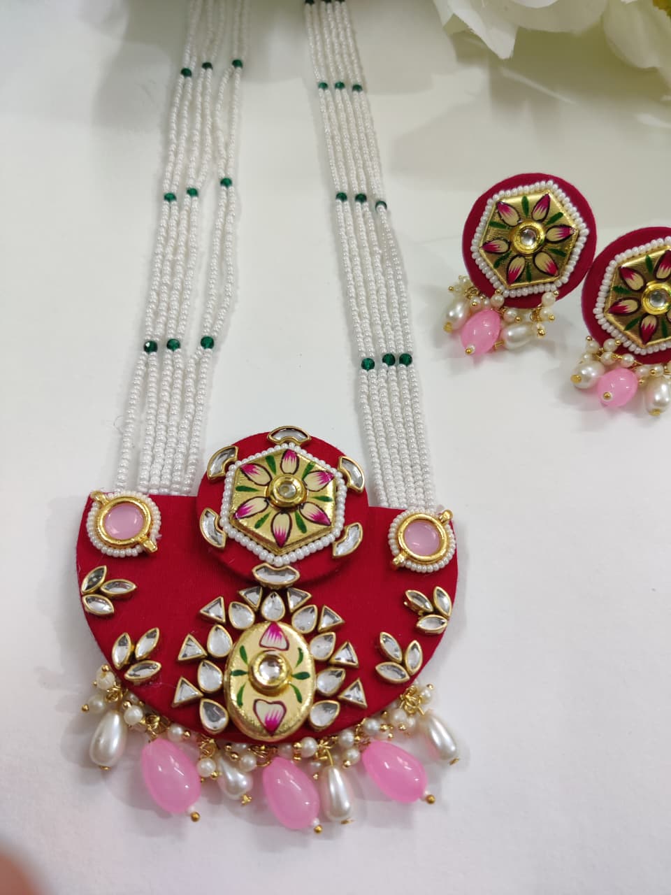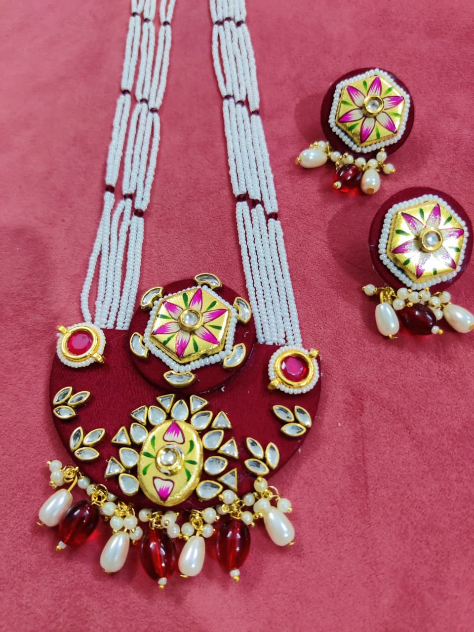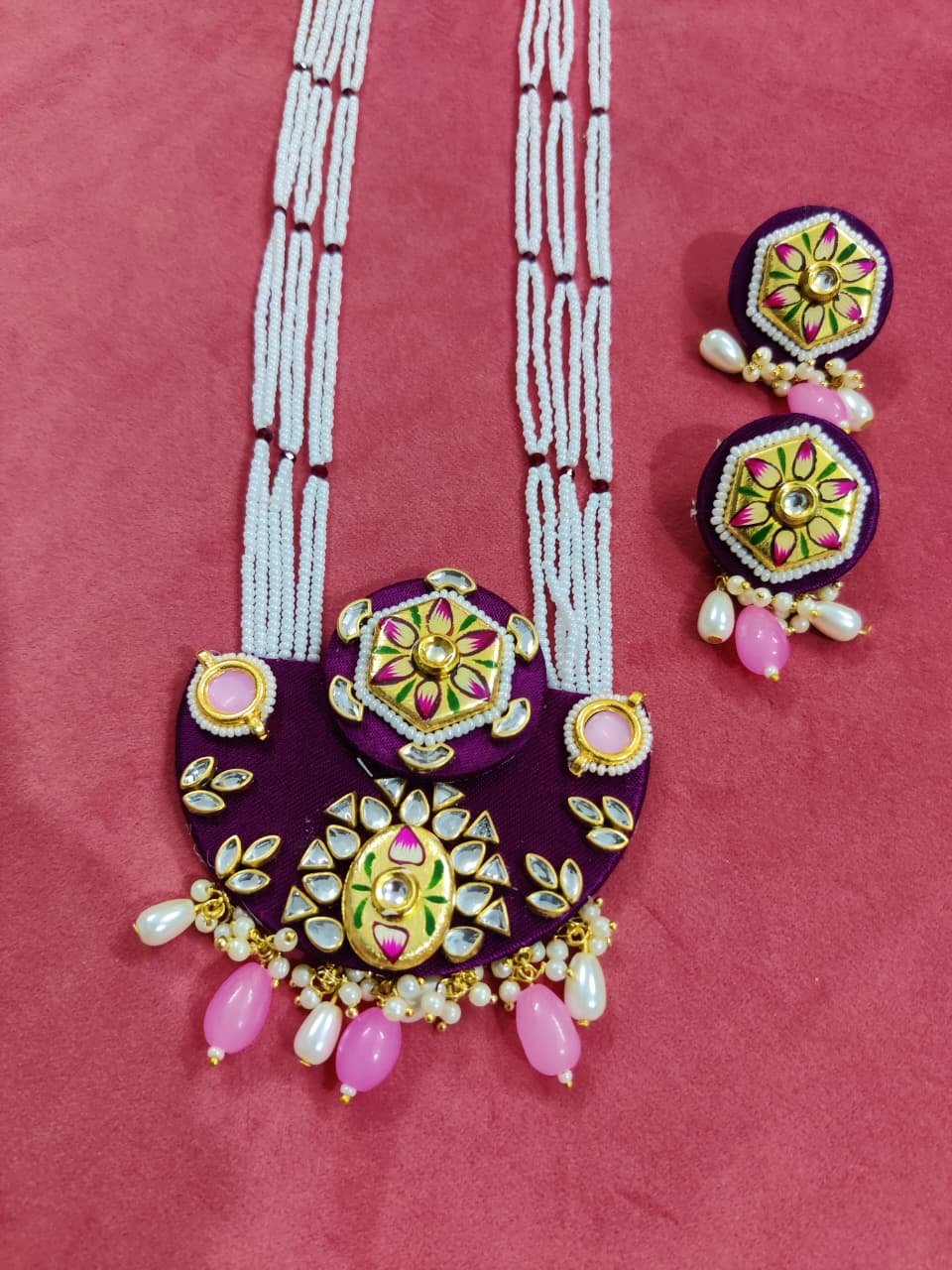 Every element of this jewellery set reflects detailed handwork, ensuring a refined finish that suits festive gatherings, weddings and cultural celebrations. Additionally, the long-length necklace creates a statement look while still feeling comfortable for extended wear. Its rich color options—Red, Maroon, Purple and Green—allow you to match it easily with a wide range of outfits. As a result, this set becomes a versatile addition to your festive wardrobe.