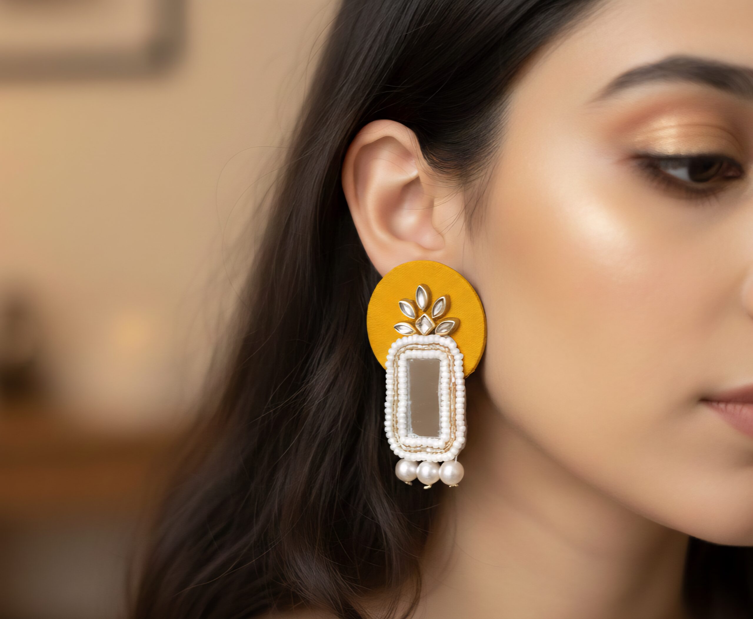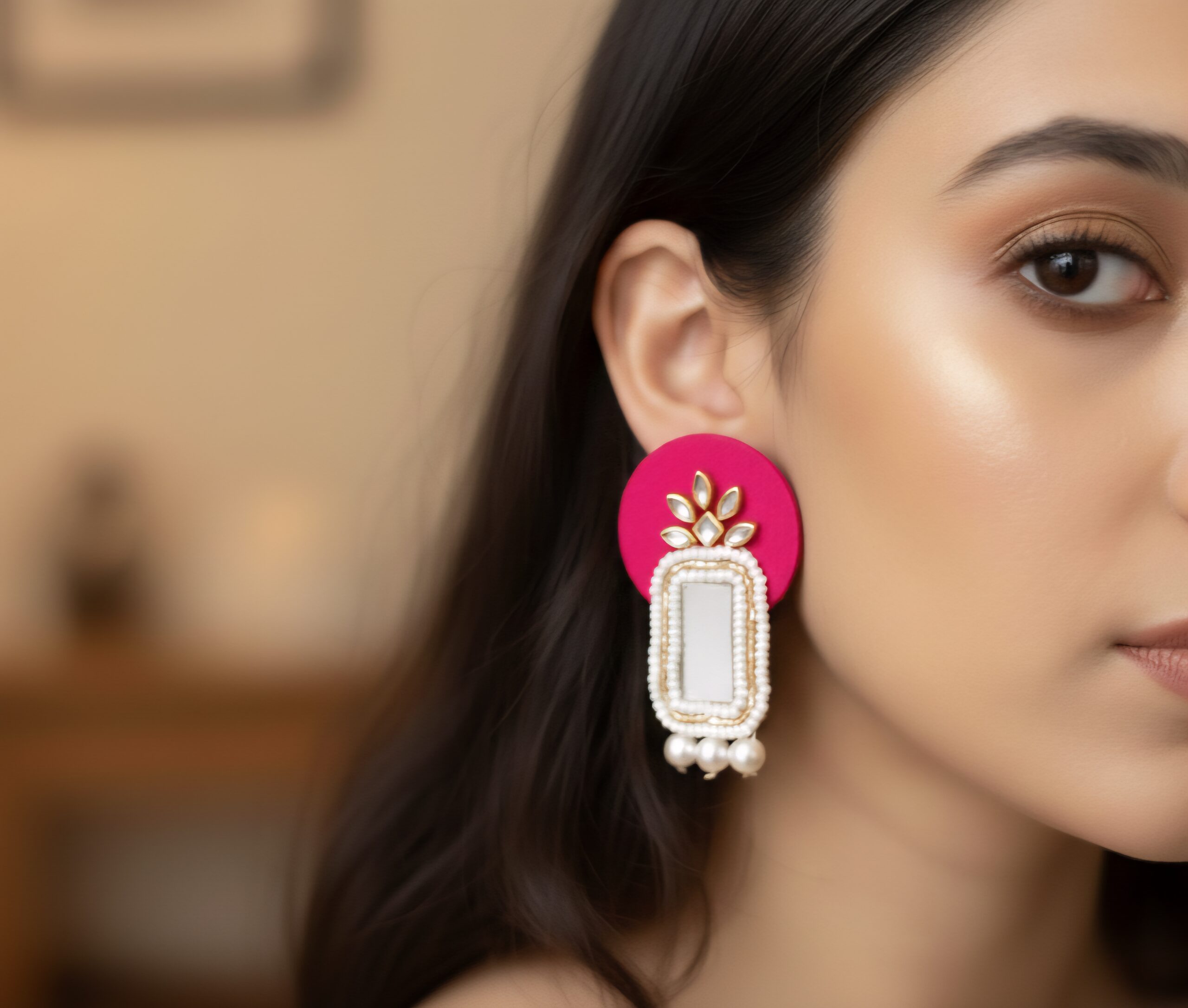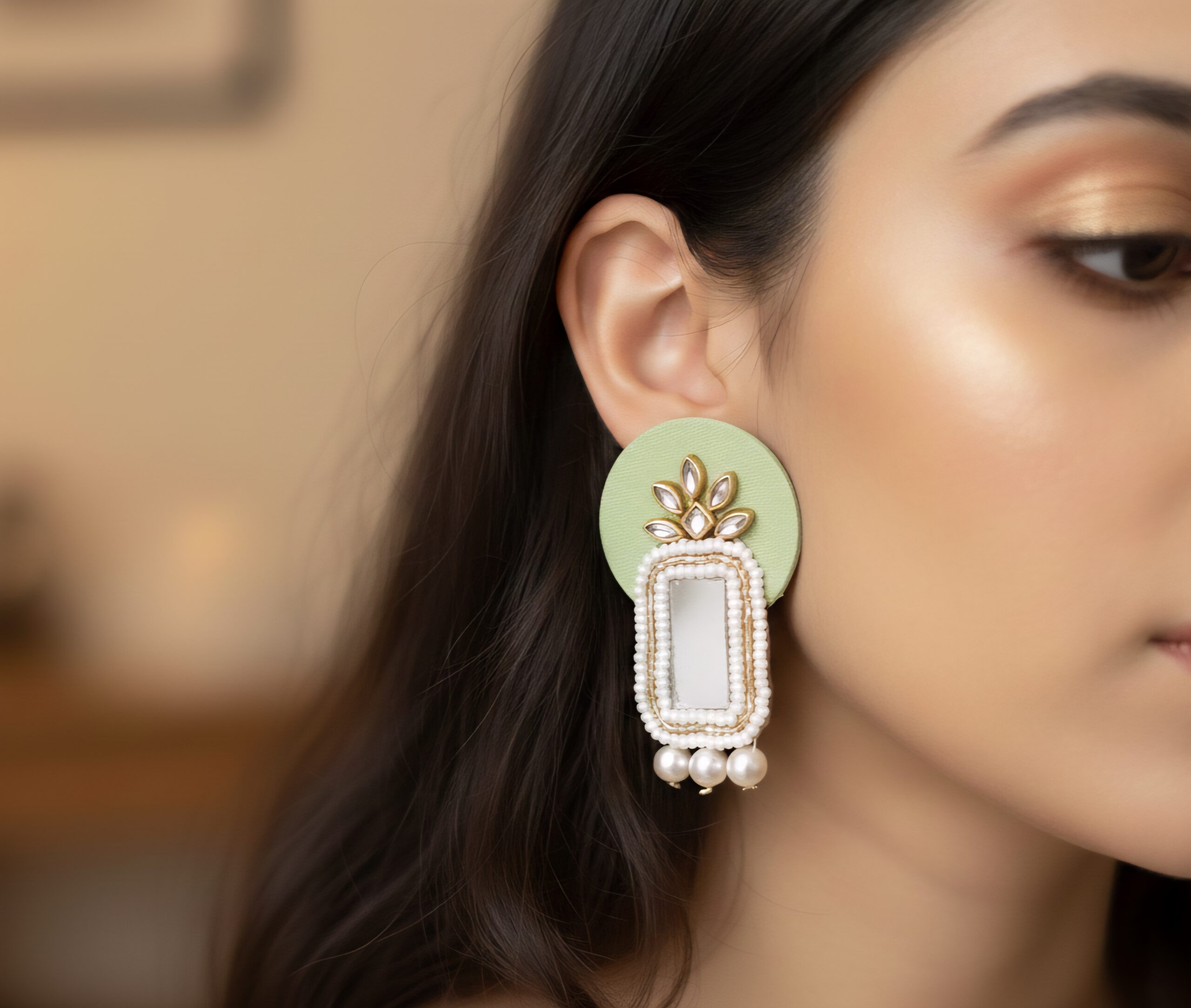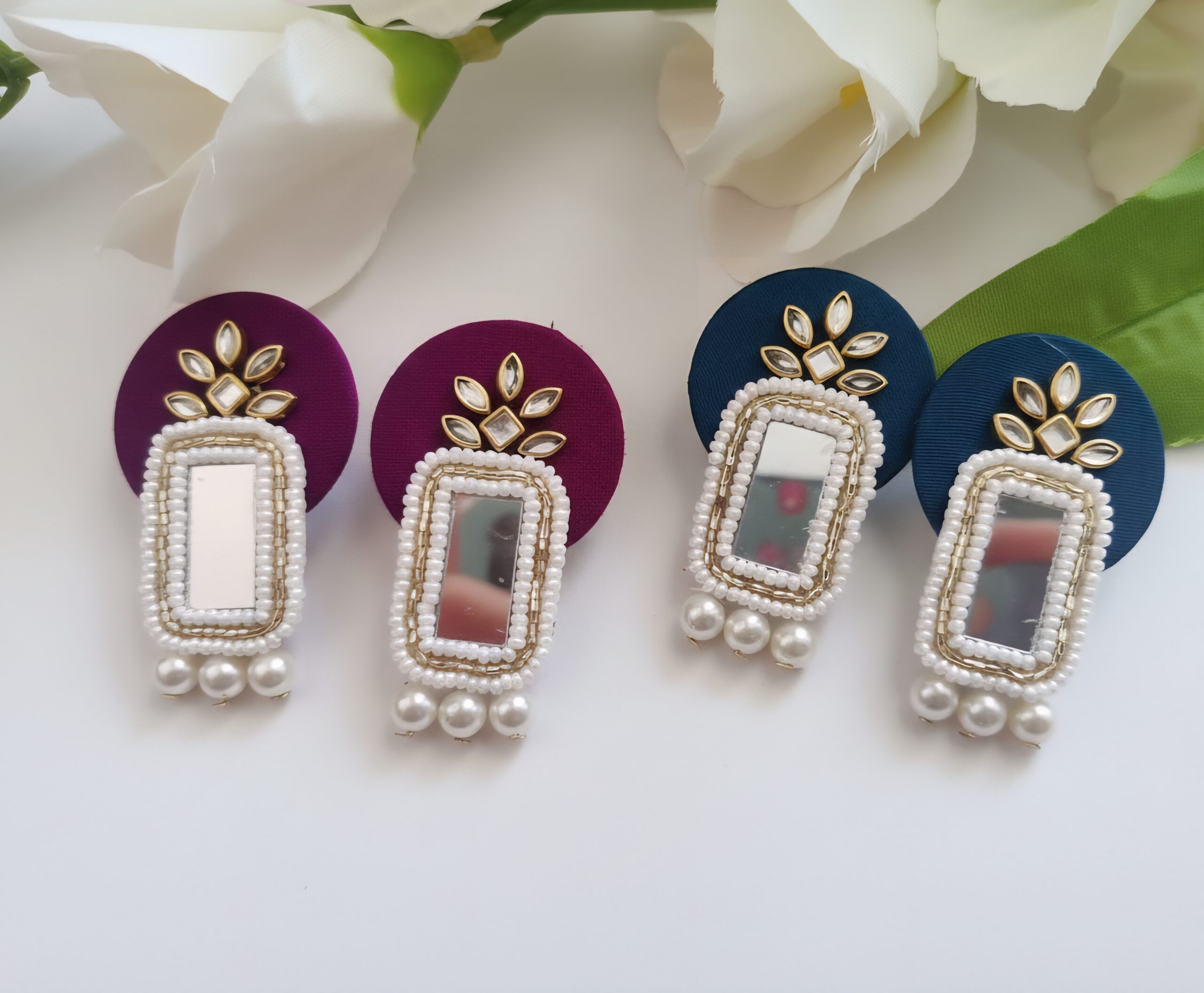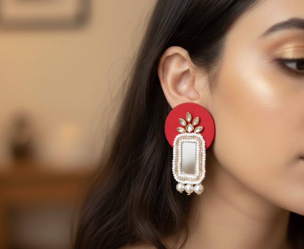 To begin with, we craft every stone placement precisely by hand, ensuring a rich, clean look you can rely on. Unlike mass-produced jewellery, handmade accessories bring natural beauty and small artistic variations that make each piece feel personal. Similarly, the kundan shine and moti detailings work together to create a brighter yet balanced glow, allowing the design to photograph beautifully. Furthermore, the outer polish resists fading when you handle it gently, so your earrings stay fresh longer. Internal website images show styling references, meanwhile, the live featured image shows the exact design, helping you shop without worrying about difference in finishing. Besides style, the durable build makes it safe for regular use, consequently, this becomes a dependable jewellery companion.