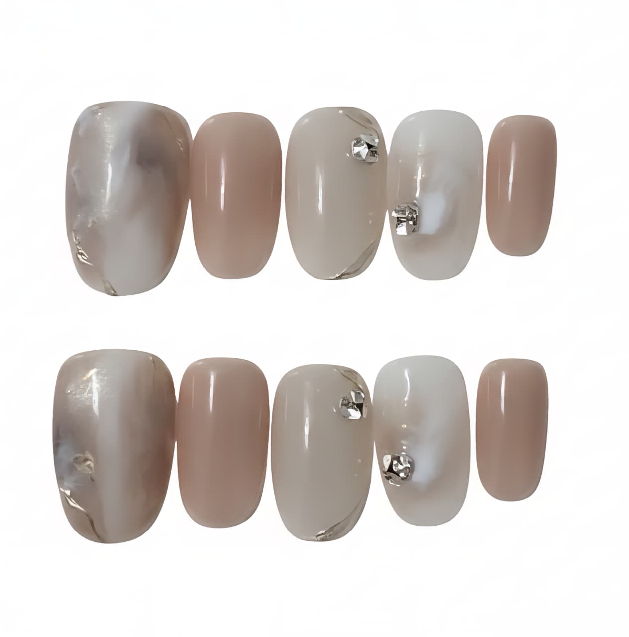 Each nail in this 15-piece set is handcrafted with precision. Our nail artists blend colours manually to achieve a naturally diffused shading effect that machine prints cannot replicate. The nails are then sealed with a glossy gel topcoat for long-lasting shine and smoothness. The short square silhouette provides a neat, minimal and universally flattering shape, making it easy to style with both Indian and Western outfits.